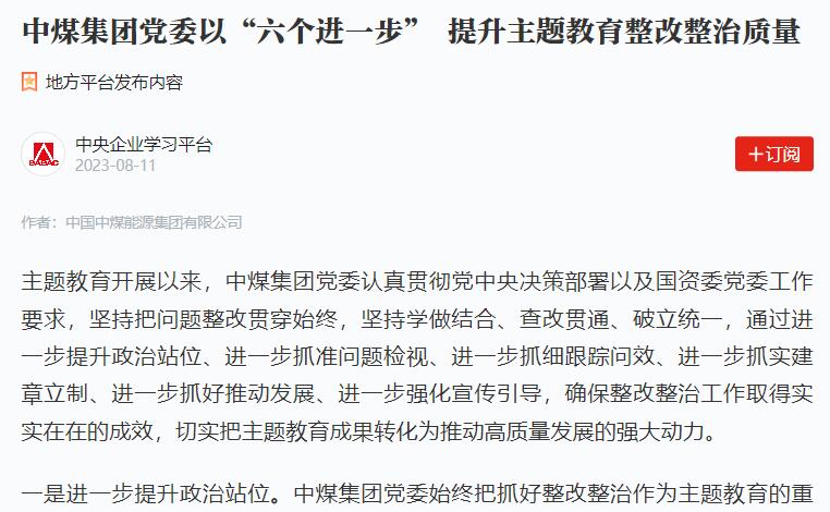 【中央主题教育官网】中煤集团:“六个进一步”提升主...